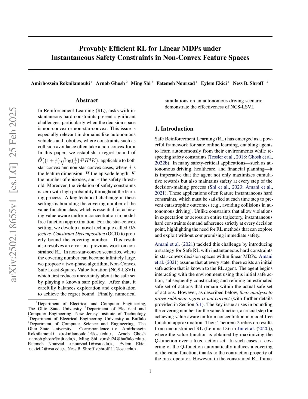 Provably Efficient RL for Linear MDPs under Instantaneous Safety Constraints in Non-Convex Feature Spaces