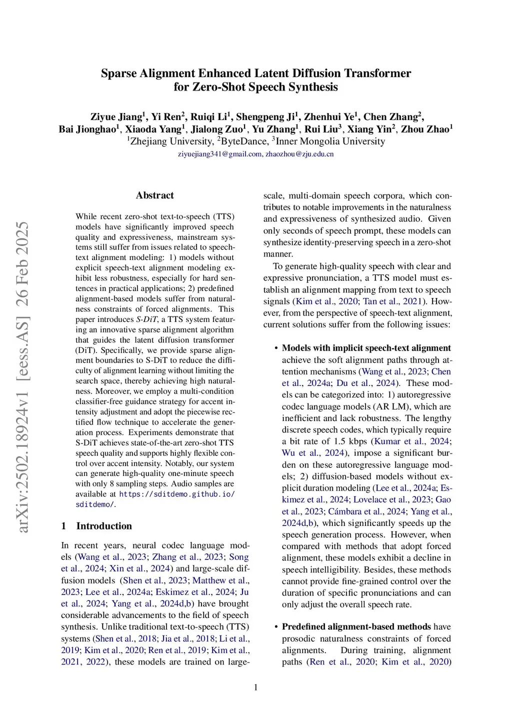 MegaTTS 3: Sparse Alignment Enhanced Latent Diffusion Transformer for Zero-Shot Speech Synthesis