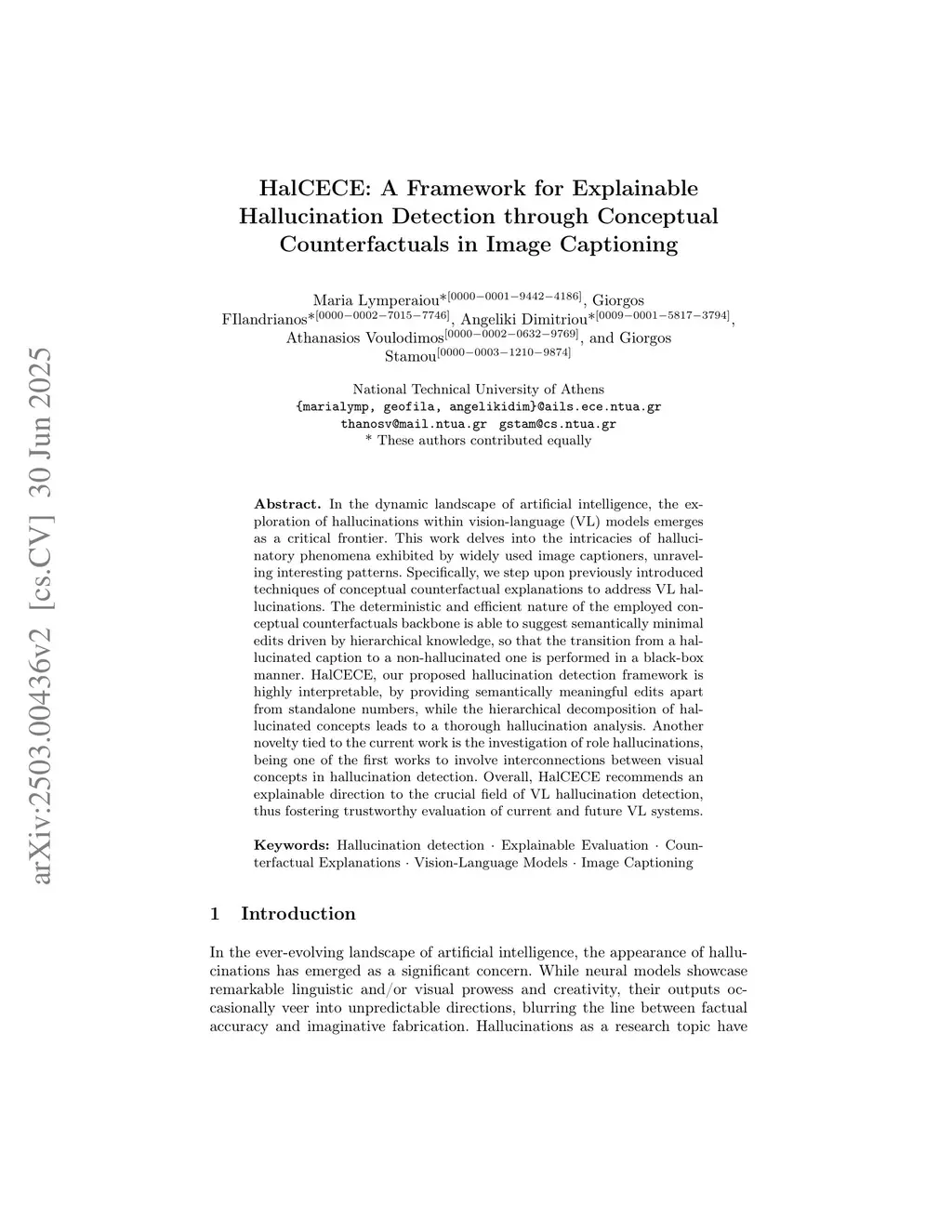 In the dynamic landscape of artificial intelligence, the exploration of hallucinations within vision-language (VL) models emerges as a critical frontier. This work delves into the intricacies of hallucinatory phenomena exhibited by widely used image captioners, unraveling interesting patterns. Specifically, we step upon previously introduced techniques of conceptual counterfactual explanations to address VL hallucinations. The deterministic and efficient nature of the employed conceptual counterfactuals backbone is able to suggest semantically minimal edits driven by hierarchical knowledge, so that the transition from a hallucinated caption to a non-hallucinated one is performed in a black-box manner. HalCECE, our proposed hallucination detection framework is highly interpretable, by providing semantically meaningful edits apart from standalone numbers, while the hierarchical decomposition of hallucinated concepts leads to a thorough hallucination analysis. Another novelty tied to the current work is the investigation of role hallucinations, being one of the first works to involve interconnections between visual concepts in hallucination detection. Overall, HalCECE recommends an explainable direction to the crucial field of VL hallucination detection, thus fostering trustworthy evaluation of current and future VL systems.