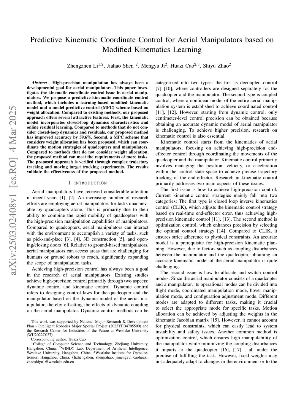 Predictive Kinematic Coordinate Control for Aerial Manipulators based on Modified Kinematics Learning