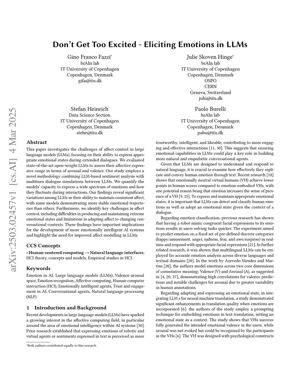 Don't Get Too Excited -- Eliciting Emotions in LLMs