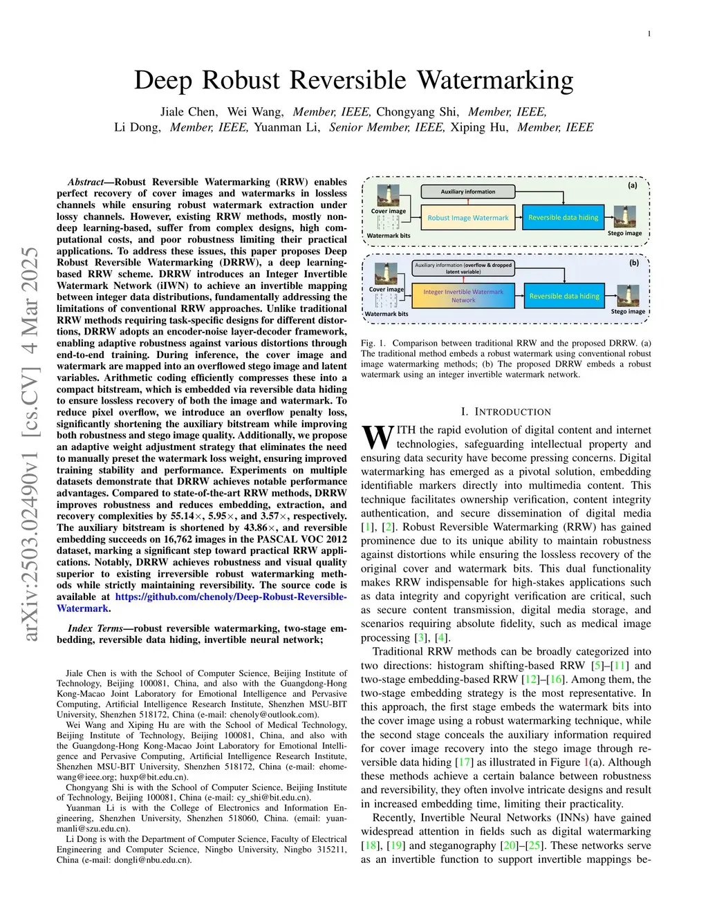 Robust Reversible Watermarking (RRW) enables perfect recovery of cover images and watermarks in lossless channels while ensuring robust watermark extraction in lossy channels. Existing RRW methods, mostly non-deep learning-based, face complex designs, high computational costs, and poor robustness, limiting their practical use. This paper proposes Deep Robust Reversible Watermarking (DRRW), a deep learning-based RRW scheme. DRRW uses an Integer Invertible Watermark Network (iIWN) to map integer data distributions invertibly, addressing conventional RRW limitations. Unlike traditional RRW, which needs distortion-specific designs, DRRW employs an encoder-noise layer-decoder framework for adaptive robustness via end-to-end training. In inference, cover image and watermark map to an overflowed stego image and latent variables, compressed by arithmetic coding into a bitstream embedded via reversible data hiding for lossless recovery. We introduce an overflow penalty loss to reduce pixel overflow, shortening the auxiliary bitstream while enhancing robustness and stego image quality. An adaptive weight adjustment strategy avoids manual watermark loss weighting, improving training stability and performance. Experiments show DRRW outperforms state-of-the-art RRW methods, boosting robustness and cutting embedding, extraction, and recovery complexities by 55.14\(\times\), 5.95\(\times\), and 3.57\(\times\), respectively. The auxiliary bitstream shrinks by 43.86\(\times\), with reversible embedding succeeding on 16,762 PASCAL VOC 2012 images, advancing practical RRW. DRRW exceeds irreversible robust watermarking in robustness and quality while maintaining reversibility.