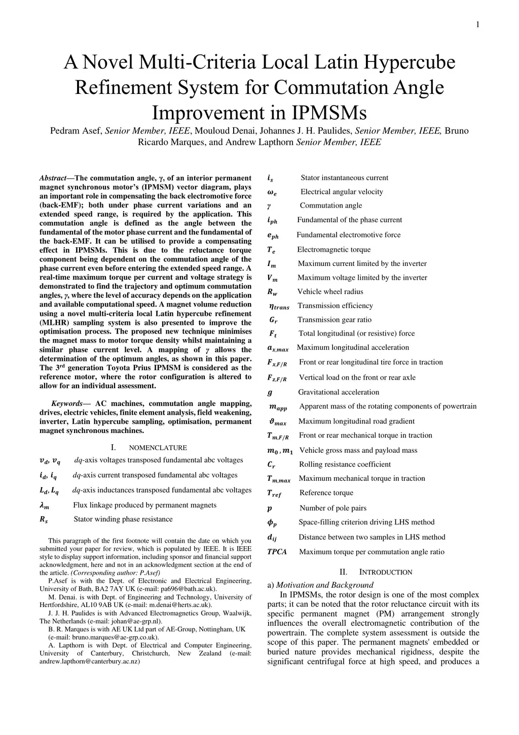 A Novel Multi-Criteria Local Latin Hypercube Refinement System for Commutation Angle Improvement in IPMSMs