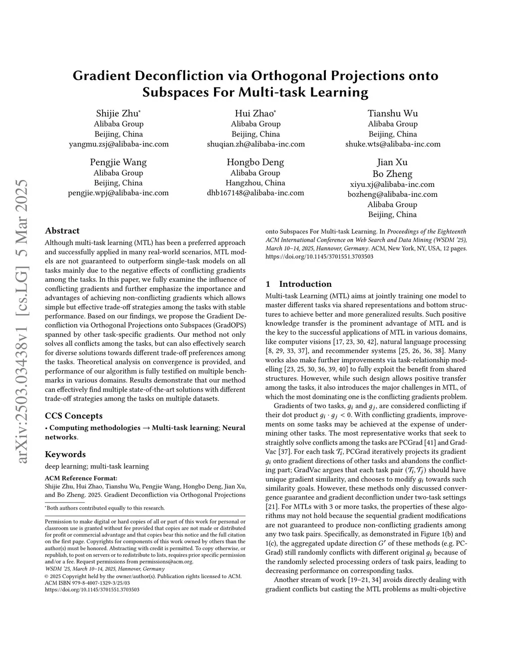 Although multi-task learning (MTL) has been a preferred approach and successfully applied in many real-world scenarios, MTL models are not guaranteed to outperform single-task models on all tasks mainly due to the negative effects of conflicting gradients among the tasks. In this paper, we fully examine the influence of conflicting gradients and further emphasize the importance and advantages of achieving non-conflicting gradients which allows simple but effective trade-off strategies among the tasks with stable performance. Based on our findings, we propose the Gradient Deconfliction via Orthogonal Projections onto Subspaces (GradOPS) spanned by other task-specific gradients. Our method not only solves all conflicts among the tasks, but can also effectively search for diverse solutions towards different trade-off preferences among the tasks. Theoretical analysis on convergence is provided, and performance of our algorithm is fully testified on multiple benchmarks in various domains. Results demonstrate that our method can effectively find multiple state-of-the-art solutions with different trade-off strategies among the tasks on multiple datasets.