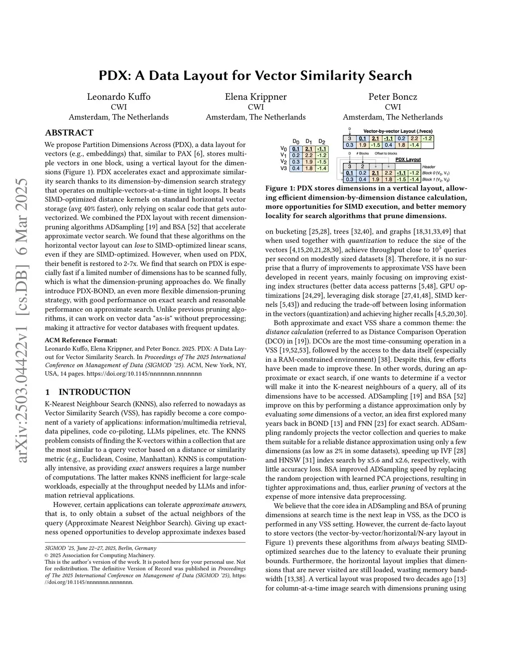PDX: A Data Layout for Vector Similarity Search