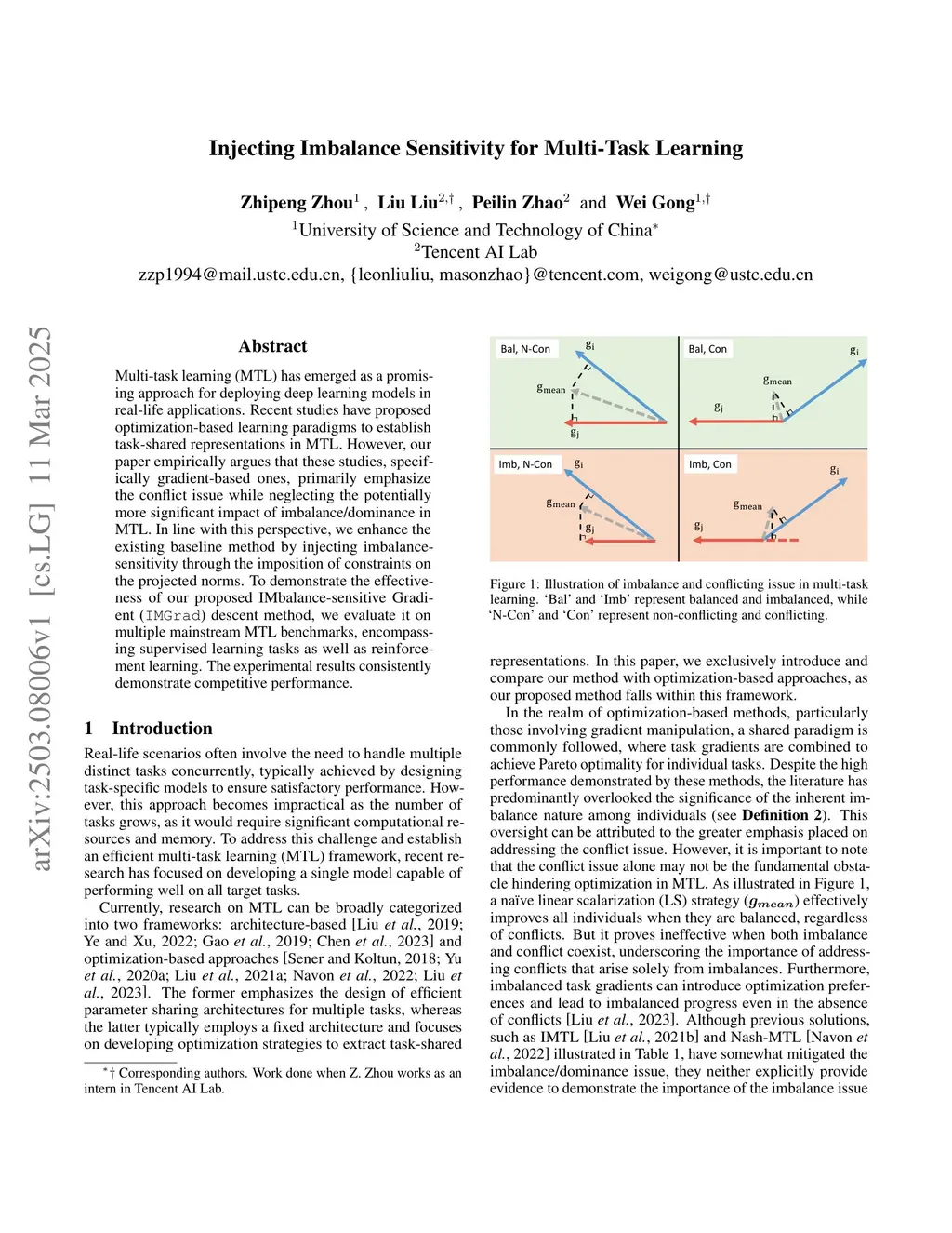 Multi-task learning (MTL) has emerged as a promising approach for deploying deep learning models in real-life applications. Recent studies have proposed optimization-based learning paradigms to establish task-shared representations in MTL. However, our paper empirically argues that these studies, specifically gradient-based ones, primarily emphasize the conflict issue while neglecting the potentially more significant impact of imbalance/dominance in MTL. In line with this perspective, we enhance the existing baseline method by injecting imbalance-sensitivity through the imposition of constraints on the projected norms. To demonstrate the effectiveness of our proposed IMbalance-sensitive Gradient (IMGrad) descent method, we evaluate it on multiple mainstream MTL benchmarks, encompassing supervised learning tasks as well as reinforcement learning. The experimental results consistently demonstrate competitive performance.