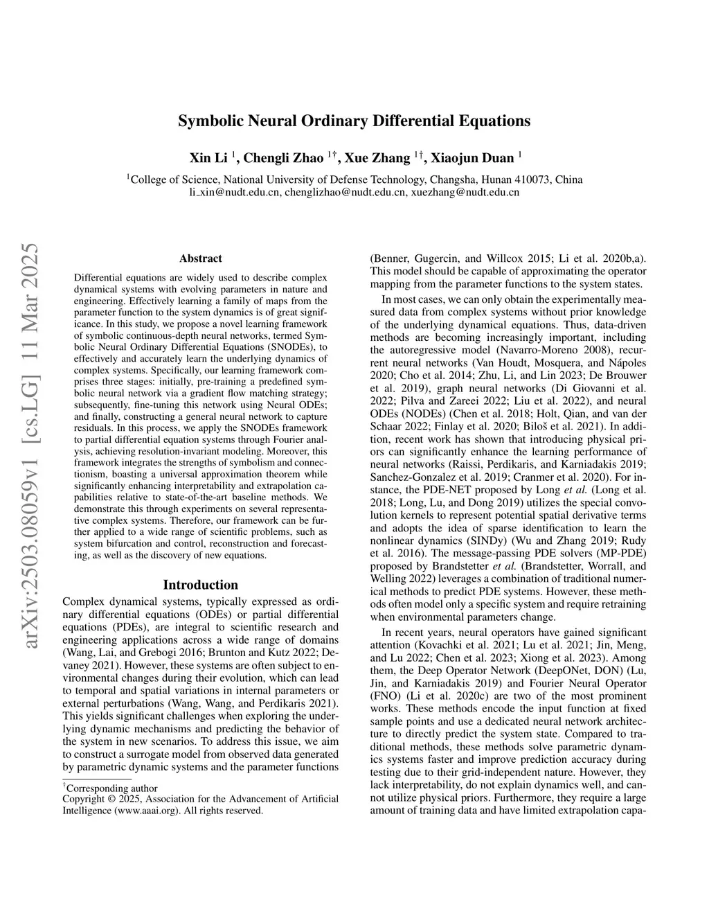 Differential equations are widely used to describe complex dynamical systems with evolving parameters in nature and engineering. Effectively learning a family of maps from the parameter function to the system dynamics is of great significance. In this study, we propose a novel learning framework of symbolic continuous-depth neural networks, termed Symbolic Neural Ordinary Differential Equations (SNODEs), to effectively and accurately learn the underlying dynamics of complex systems. Specifically, our learning framework comprises three stages: initially, pre-training a predefined symbolic neural network via a gradient flow matching strategy; subsequently, fine-tuning this network using Neural ODEs; and finally, constructing a general neural network to capture residuals. In this process, we apply the SNODEs framework to partial differential equation systems through Fourier analysis, achieving resolution-invariant modeling. Moreover, this framework integrates the strengths of symbolism and connectionism, boasting a universal approximation theorem while significantly enhancing interpretability and extrapolation capabilities relative to state-of-the-art baseline methods. We demonstrate this through experiments on several representative complex systems. Therefore, our framework can be further applied to a wide range of scientific problems, such as system bifurcation and control, reconstruction and forecasting, as well as the discovery of new equations.