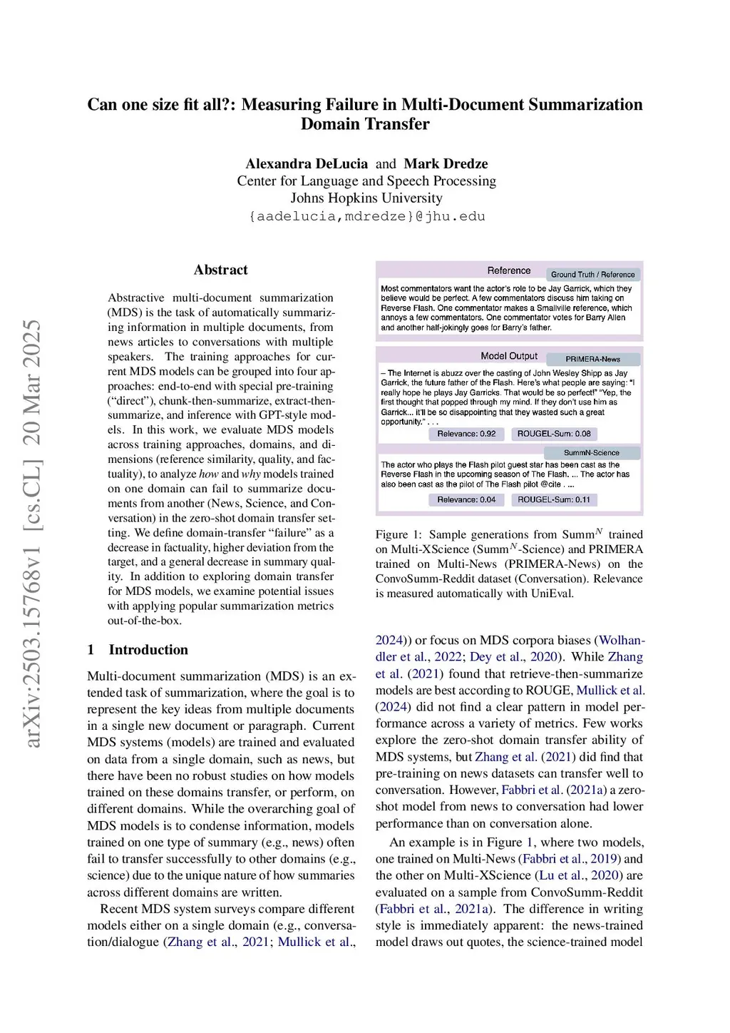 Abstractive multi-document summarization (MDS) is the task of automatically summarizing information in multiple documents, from news articles to conversations with multiple speakers. The training approaches for current MDS models can be grouped into four approaches: end-to-end with special pre-training ("direct"), chunk-then-summarize, extract-then-summarize, and inference with GPT-style models. In this work, we evaluate MDS models across training approaches, domains, and dimensions (reference similarity, quality, and factuality), to analyze how and why models trained on one domain can fail to summarize documents from another (News, Science, and Conversation) in the zero-shot domain transfer setting. We define domain-transfer "failure" as a decrease in factuality, higher deviation from the target, and a general decrease in summary quality. In addition to exploring domain transfer for MDS models, we examine potential issues with applying popular summarization metrics out-of-the-box.