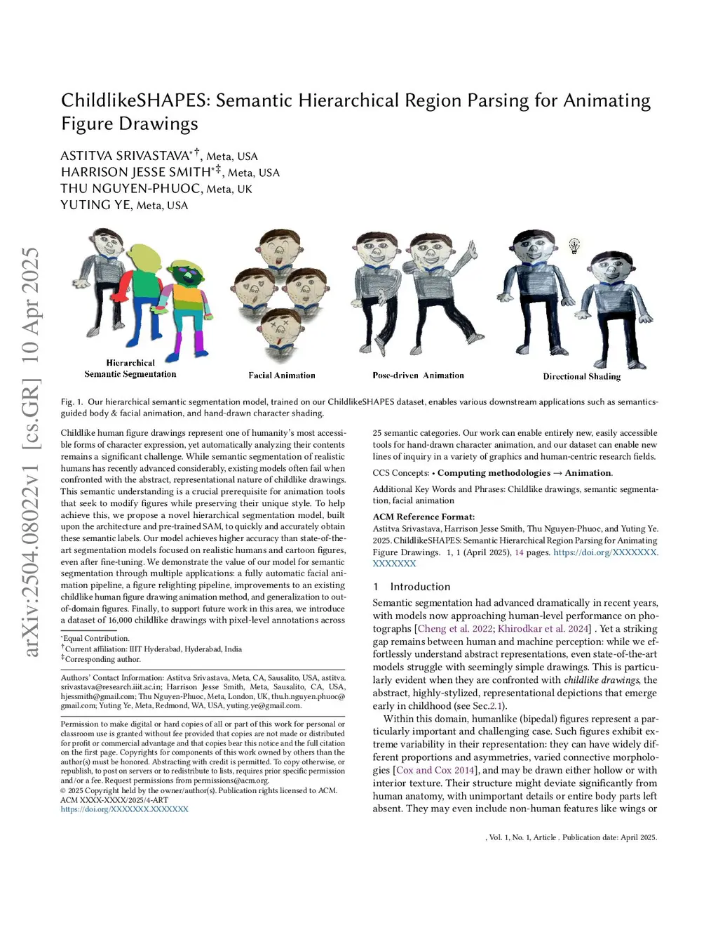 ChildlikeSHAPES: Semantic Hierarchical Region Parsing for Animating Figure Drawings