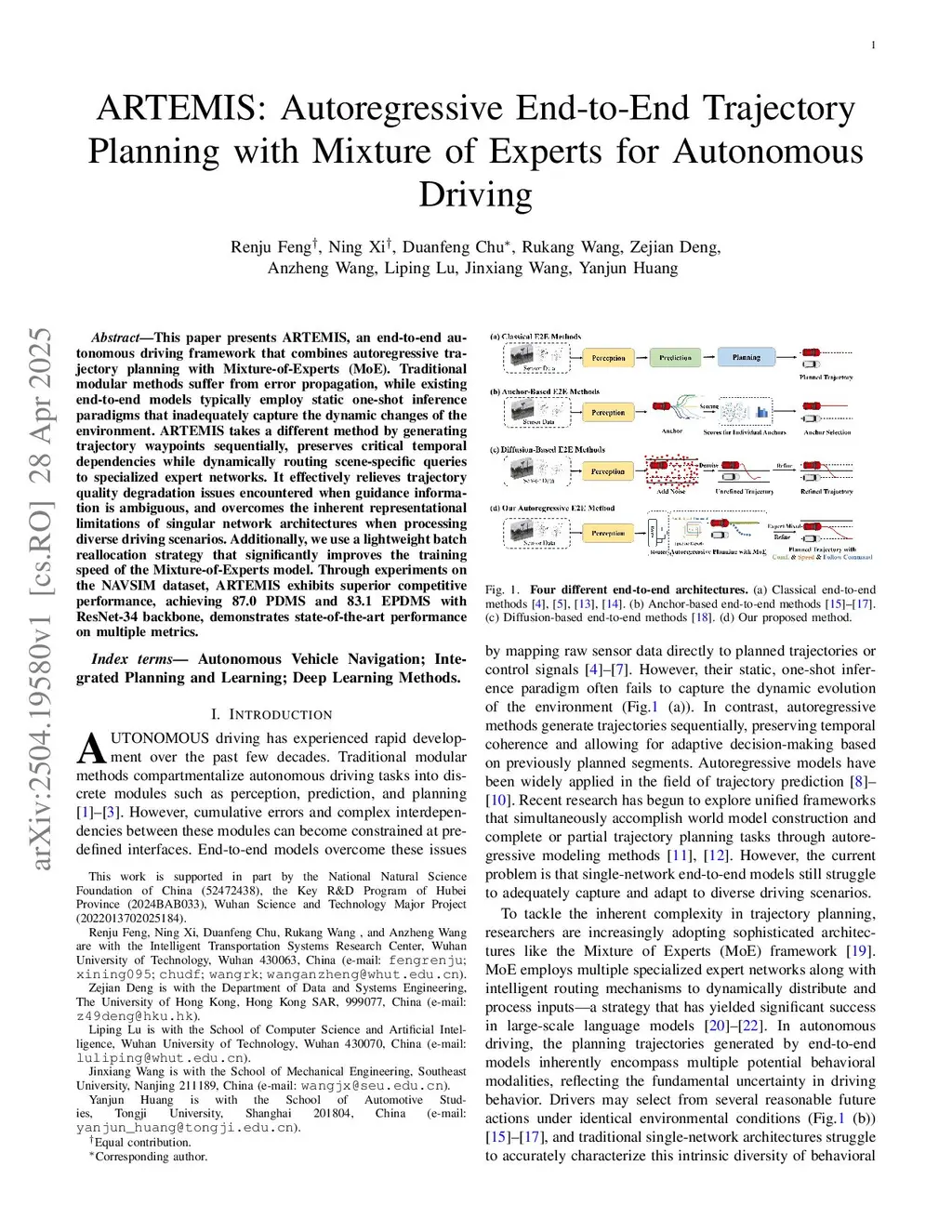 ARTEMIS: Autoregressive End-to-End Trajectory Planning with Mixture of Experts for Autonomous Driving