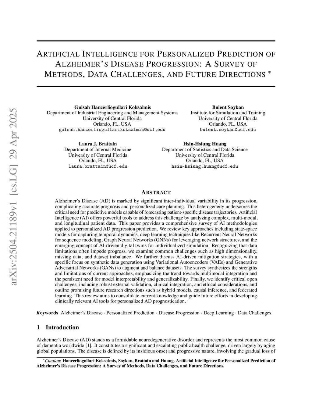 Artificial Intelligence for Personalized Prediction of Alzheimer's Disease Progression: A Survey of Methods, Data Challenges, and Future Directions