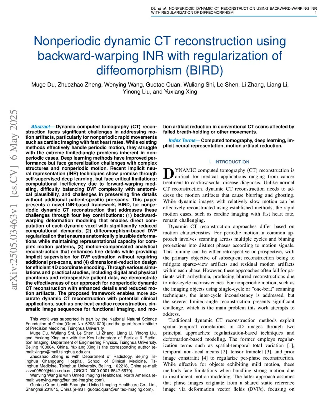 Nonperiodic dynamic CT reconstruction using backward-warping INR with regularization of diffeomorphism (BIRD)
