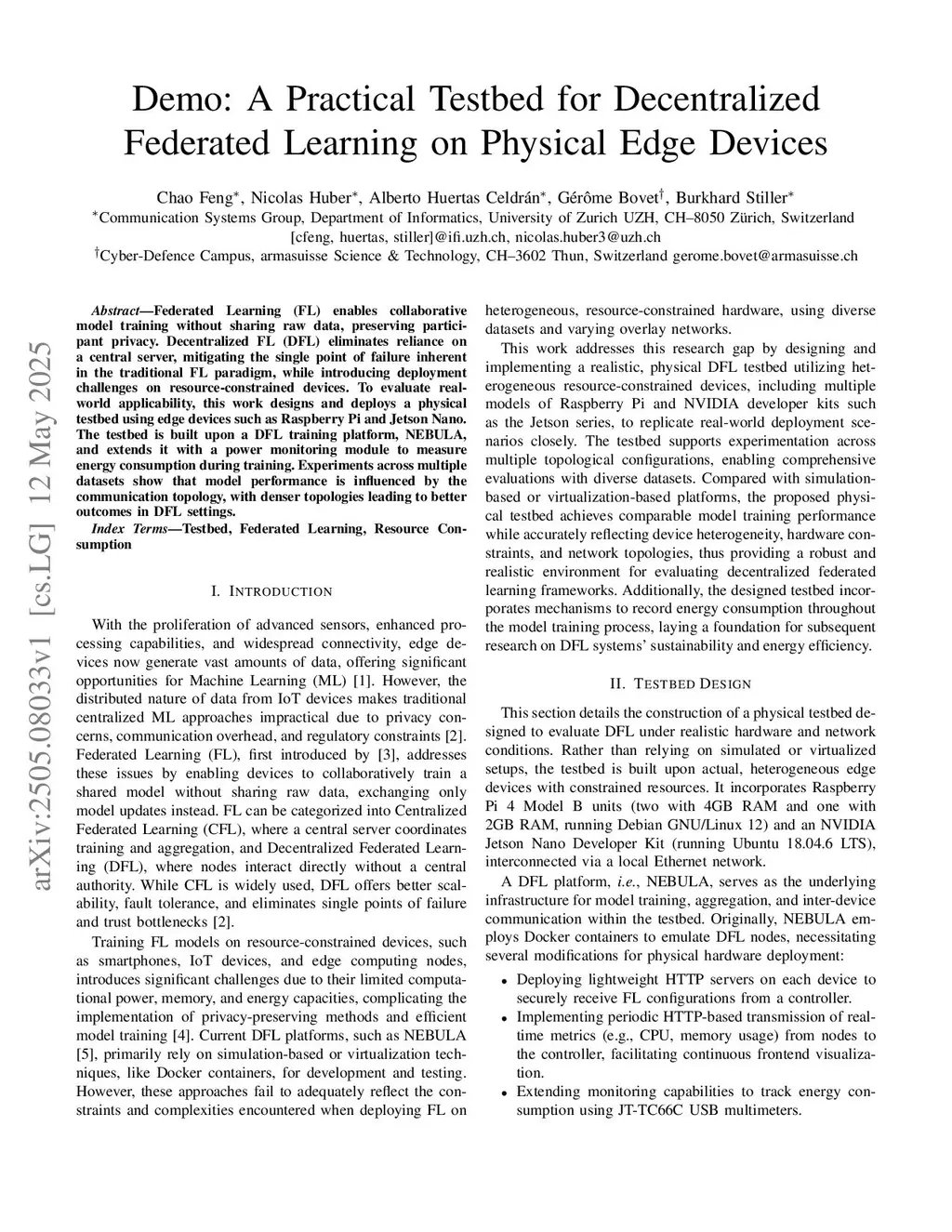 Demo: A Practical Testbed for Decentralized Federated Learning on Physical Edge Devices