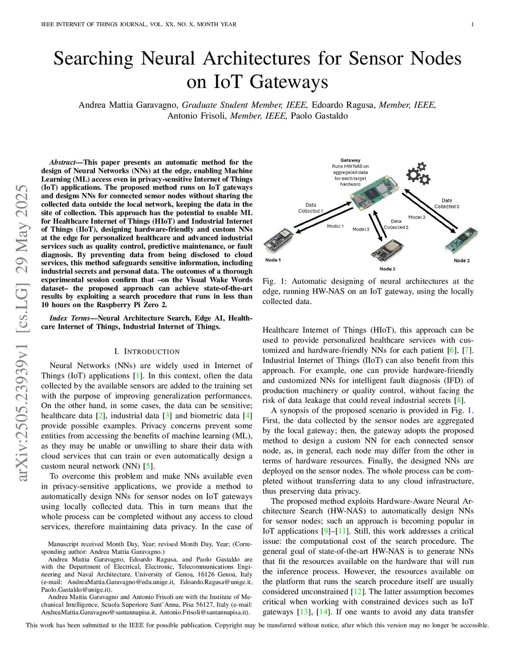 Searching Neural Architectures for Sensor Nodes on IoT Gateways
