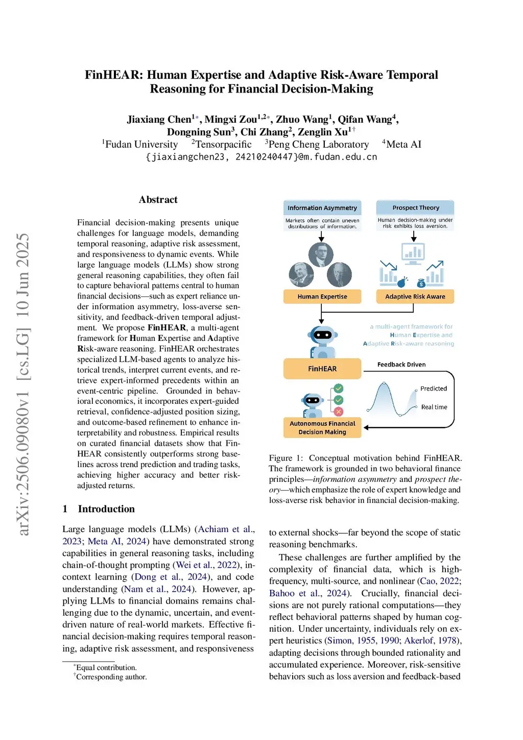 Financial decision-making presents unique challenges for language models, demanding temporal reasoning, adaptive risk assessment, and responsiveness to dynamic events. While large language models (LLMs) show strong general reasoning capabilities, they often fail to capture behavioral patterns central to human financial decisions-such as expert reliance under information asymmetry, loss-averse sensitivity, and feedback-driven temporal adjustment. We propose FinHEAR, a multi-agent framework for Human Expertise and Adaptive Risk-aware reasoning. FinHEAR orchestrates specialized LLM-based agents to analyze historical trends, interpret current events, and retrieve expert-informed precedents within an event-centric pipeline. Grounded in behavioral economics, it incorporates expert-guided retrieval, confidence-adjusted position sizing, and outcome-based refinement to enhance interpretability and robustness. Empirical results on curated financial datasets show that FinHEAR consistently outperforms strong baselines across trend prediction and trading tasks, achieving higher accuracy and better risk-adjusted returns.