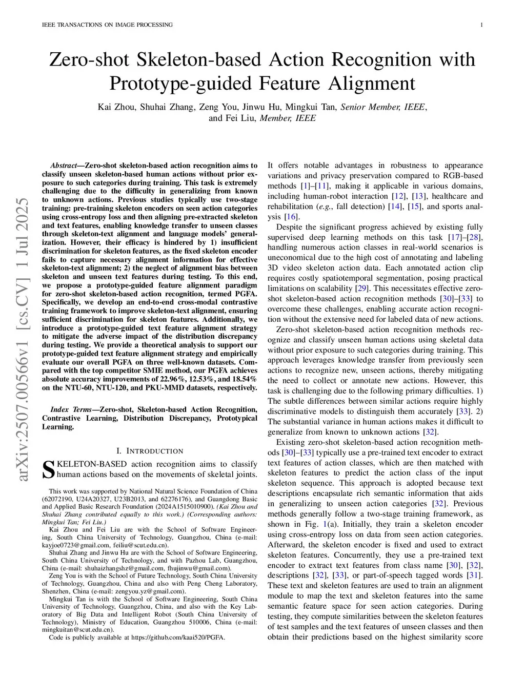Zero-Shot Skeleton-Based Action Recognition With Prototype-Guided Feature Alignment