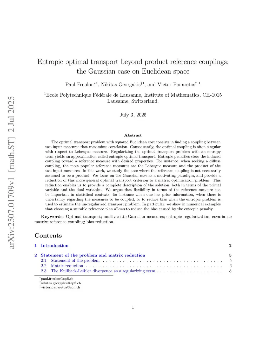 The Optimal Transport (OT) problem with squared Euclidean cost consists in finding a coupling between two input measures that maximizes correlation. Consequently, the optimal coupling is often singular with respect to the Lebesgue measure. Regularizing the OT problem with an entropy term yields an approximation called entropic optimal transport. Entropic penalties steer the induced coupling toward a reference measure with desired properties. For instance, when seeking a diffuse coupling, the most popular reference measures are the Lebesgue measure and the product of the two input measures. In this work, we study the case where the reference coupling is not a product, focussing on the Gaussian case as a core paradigm. We establish a reduction of such a regularised OT problem to a matrix optimization problem, enabling us to provide a complete description of the solution, both in terms of the primal variable and the dual variables. Beyond its intrinsic interest, allowing non-product references is essential in dynamic statistical settings. As a key motivation, we address the reconstruction of trajectory dynamics from finitely many time marginals where, unlike product references, Gaussian process references produce transitions that assemble into a coherent continuous-time process.
