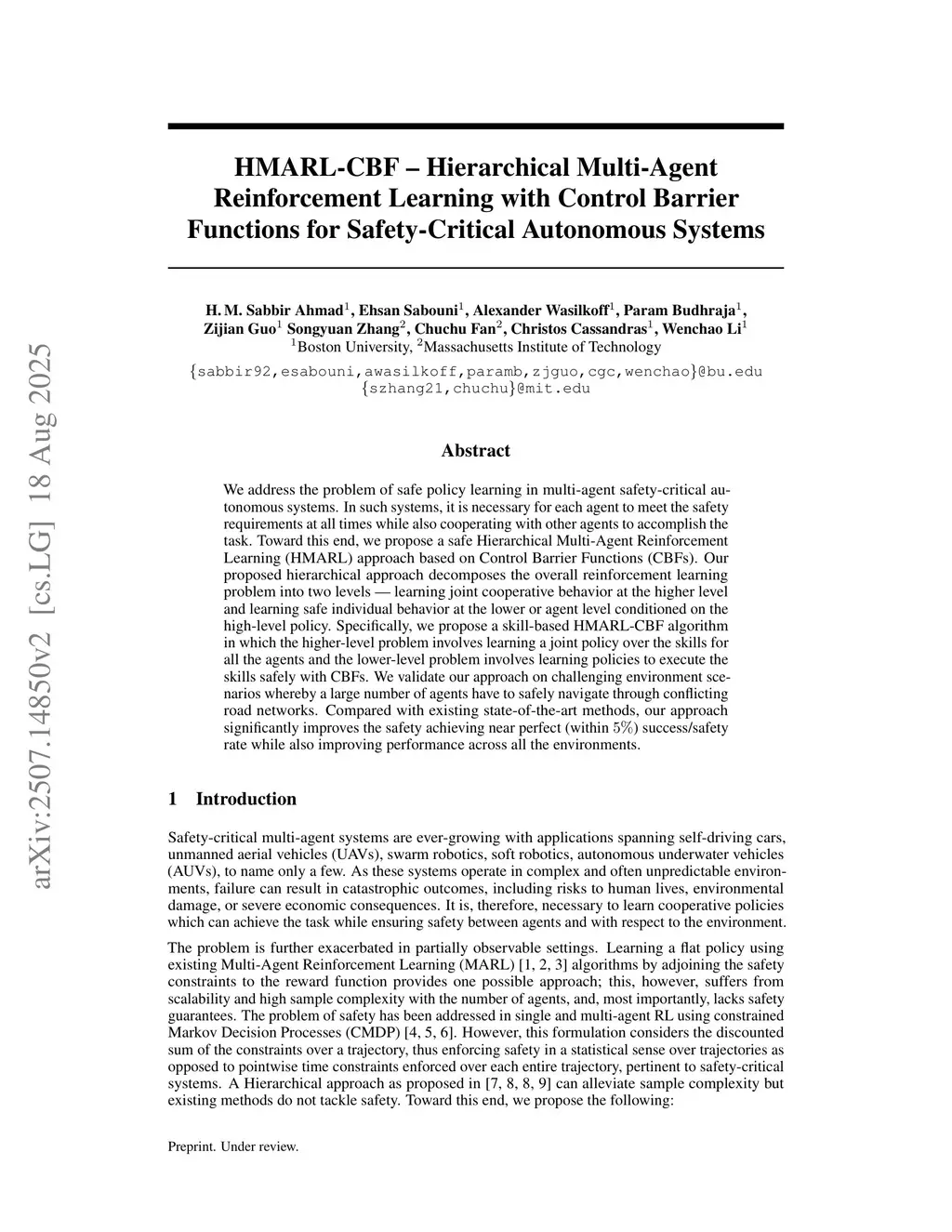 Hierarchical Multi-Agent Reinforcement Learning with Control Barrier Functions for Safety-Critical Autonomous Systems