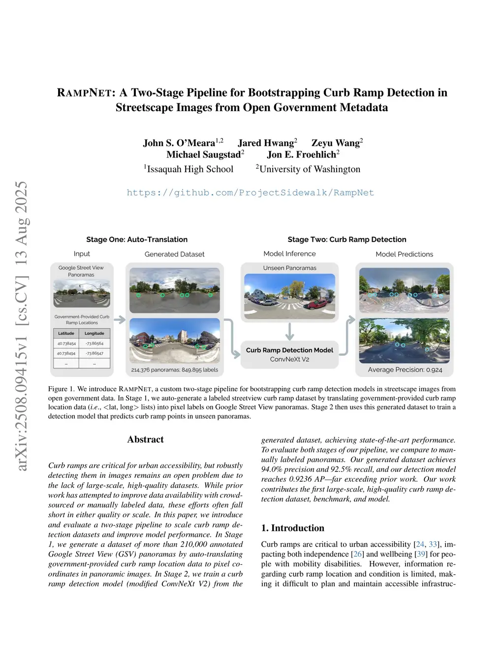 RampNet: A Two-Stage Pipeline for Bootstrapping Curb Ramp Detection in Streetscape Images from Open Government Metadata
