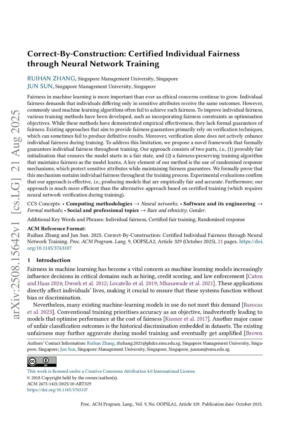 Correct-By-Construction: Certified Individual Fairness through Neural Network Training