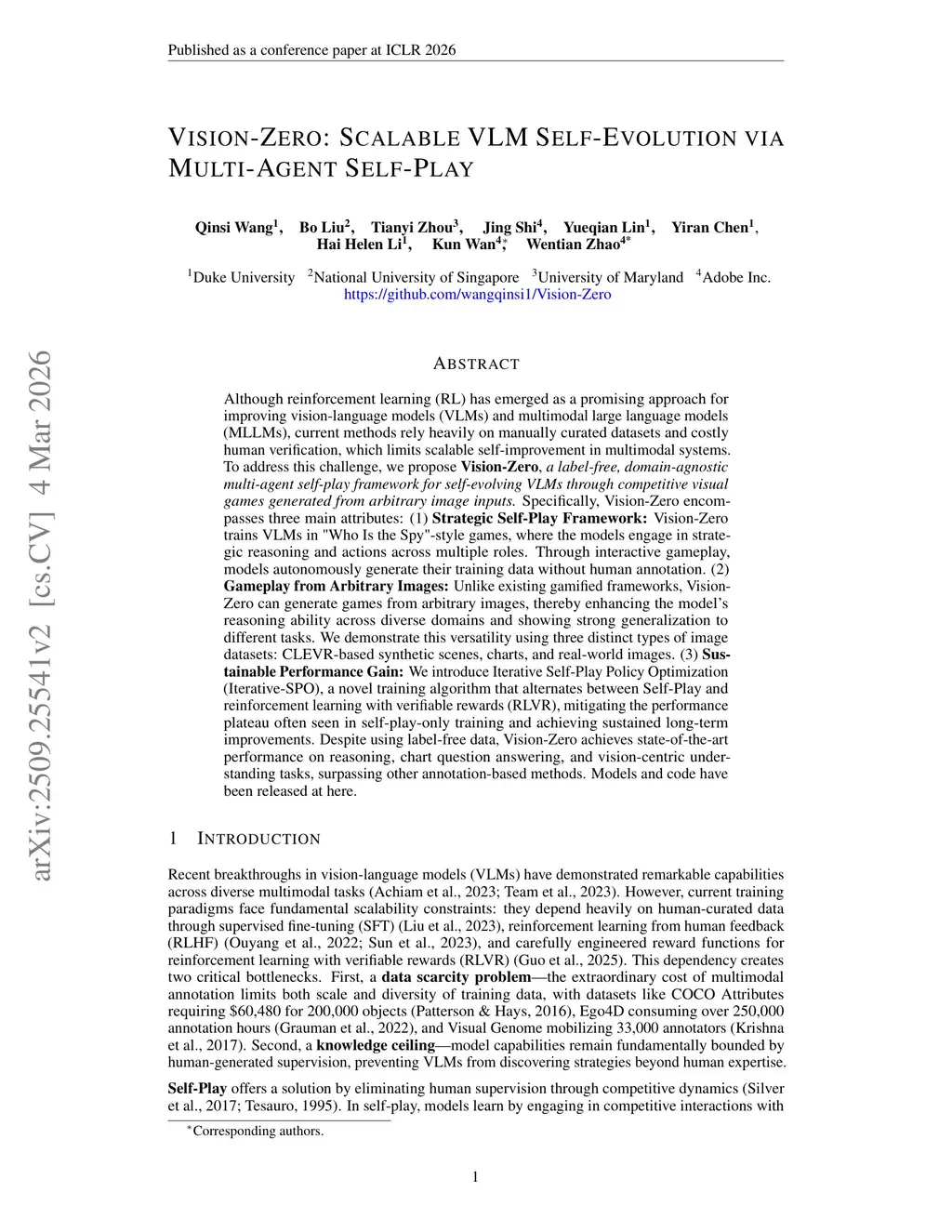 Vision-Zero: Scalable VLM Self-Improvement via Strategic Gamified Self-Play