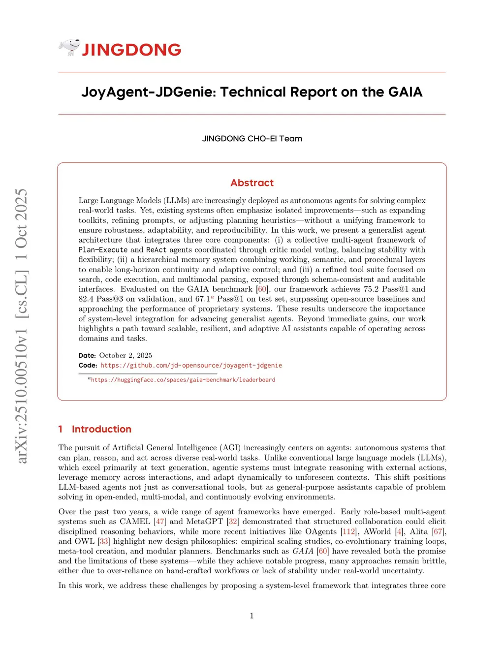 JoyAgent-JDGenie: Technical Report on the GAIA