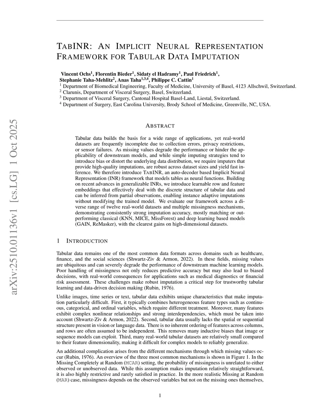 TabINR: An Implicit Neural Representation Framework for Tabular Data Imputation