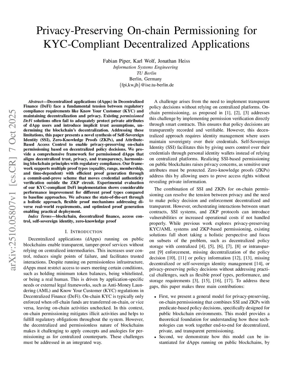 Privacy-Preserving On-chain Permissioning for KYC-Compliant Decentralized Applications