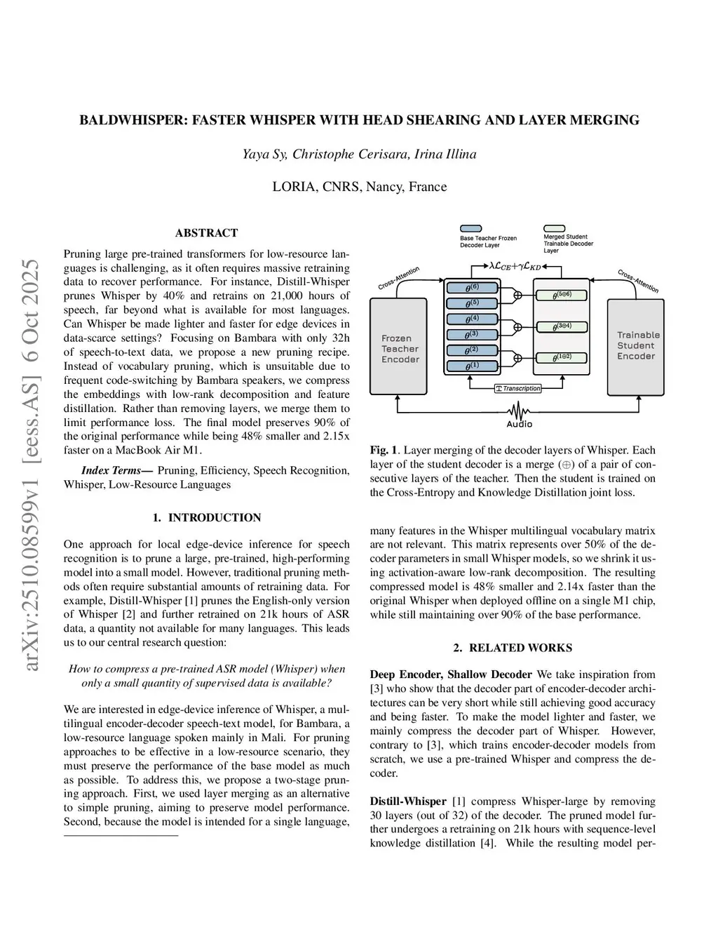 BaldWhisper: Faster Whisper with Head Shearing and Layer Merging