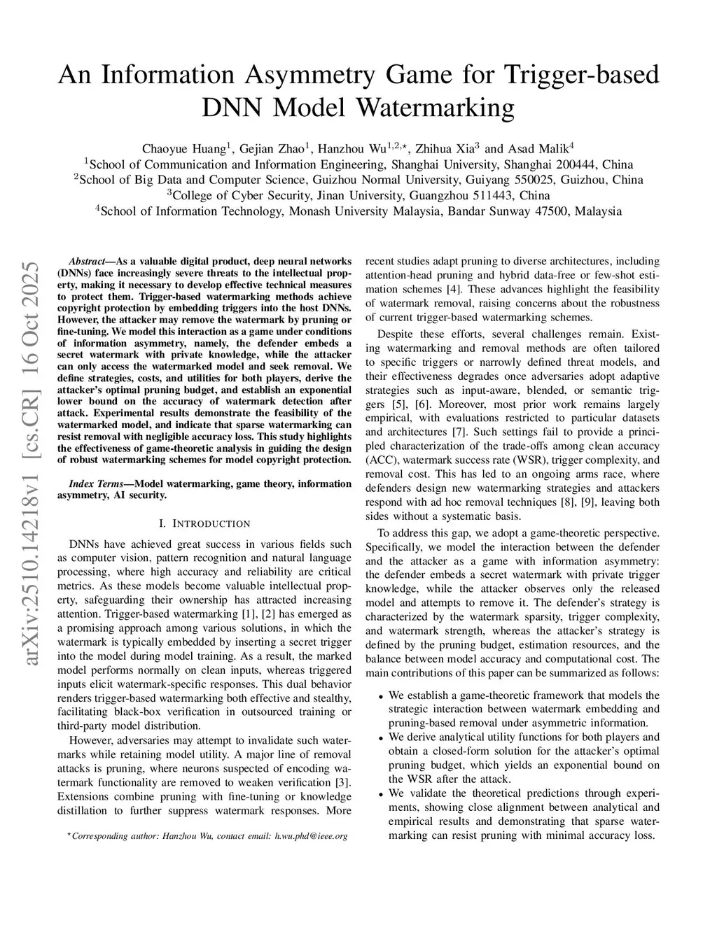 An Information Asymmetry Game for Trigger-based DNN Model Watermarking