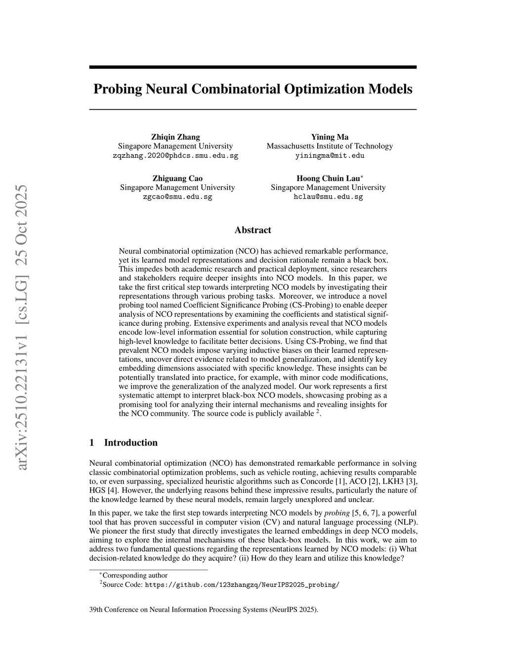 Neural combinatorial optimization (NCO) has achieved remarkable performance, yet its learned model representations and decision rationale remain a black box. This impedes both academic research and practical deployment, since researchers and stakeholders require deeper insights into NCO models. In this paper, we take the first critical step towards interpreting NCO models by investigating their representations through various probing tasks. Moreover, we introduce a novel probing tool named Coefficient Significance Probing (CS-Probing) to enable deeper analysis of NCO representations by examining the coefficients and statistical significance during probing. Extensive experiments and analysis reveal that NCO models encode low-level information essential for solution construction, while capturing high-level knowledge to facilitate better decisions. Using CS-Probing, we find that prevalent NCO models impose varying inductive biases on their learned representations, uncover direct evidence related to model generalization, and identify key embedding dimensions associated with specific knowledge. These insights can be potentially translated into practice, for example, with minor code modifications, we improve the generalization of the analyzed model. Our work represents a first systematic attempt to interpret black-box NCO models, showcasing probing as a promising tool for analyzing their internal mechanisms and revealing insights for the NCO community. The source code is publicly available.