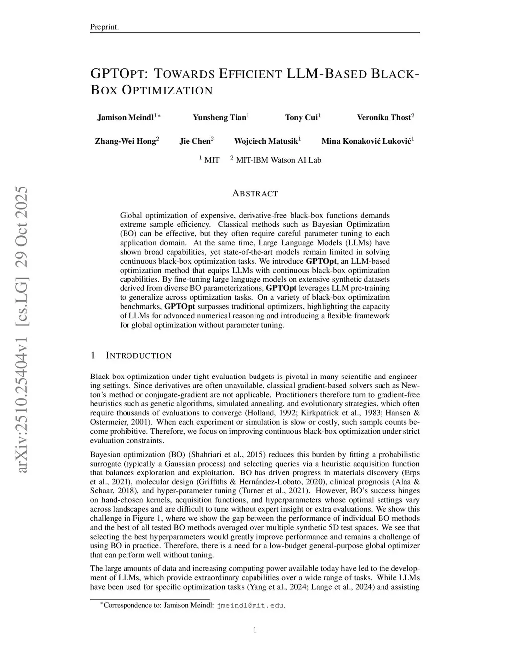 GPTOpt: Teaching LLMs to do Interpretable Black-Box Optimization