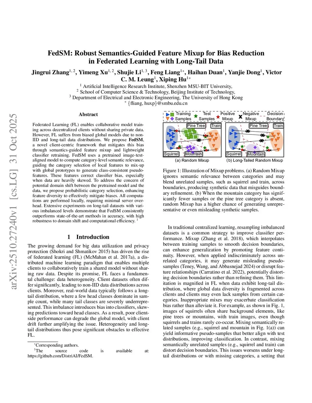 FedSM: Robust Semantics-Guided Feature Mixup for Bias Reduction in Federated Learning with Long-Tail Data