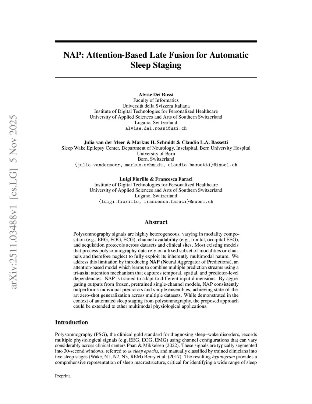 NAP: Attention-Based Late Fusion for Automatic Sleep Staging