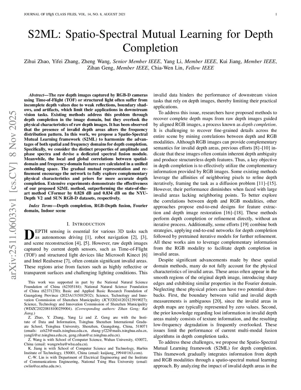 S2ML: Spatio-Spectral Mutual Learning for Depth Completion
