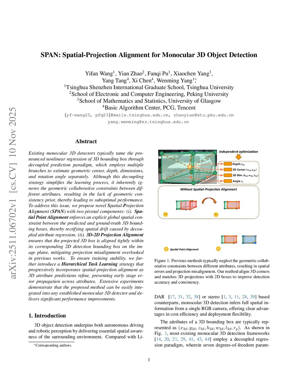 SPAN: Spatial-Projection Alignment for Monocular 3D Object Detection