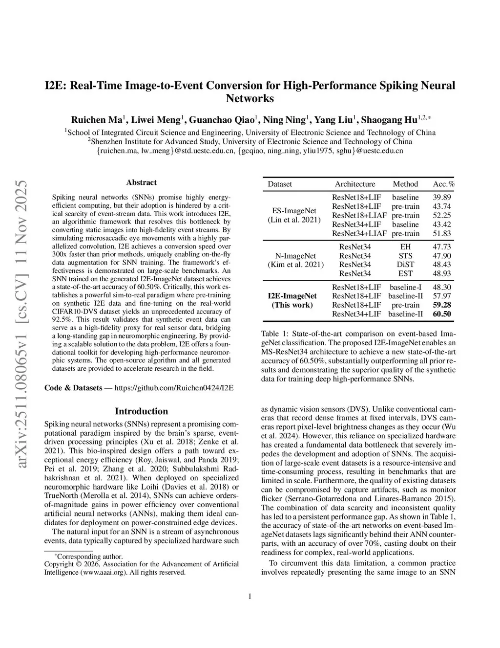 Spiking neural networks (SNNs) promise highly energy-efficient computing, but their adoption is hindered by a critical scarcity of event-stream data. This work introduces I2E, an algorithmic framework that resolves this bottleneck by converting static images into high-fidelity event streams. By simulating microsaccadic eye movements with a highly parallelized convolution, I2E achieves a conversion speed over 300x faster than prior methods, uniquely enabling on-the-fly data augmentation for SNN training. The framework's effectiveness is demonstrated on large-scale benchmarks. An SNN trained on the generated I2E-ImageNet dataset achieves a state-of-the-art accuracy of 60.50%. Critically, this work establishes a powerful sim-to-real paradigm where pre-training on synthetic I2E data and fine-tuning on the real-world CIFAR10-DVS dataset yields an unprecedented accuracy of 92.5%. This result validates that synthetic event data can serve as a high-fidelity proxy for real sensor data, bridging a long-standing gap in neuromorphic engineering. By providing a scalable solution to the data problem, I2E offers a foundational toolkit for developing high-performance neuromorphic systems. The open-source algorithm and all generated datasets are provided to accelerate research in the field.