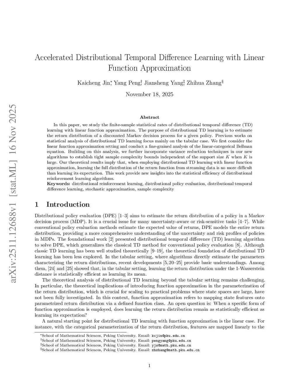 Accelerated Distributional Temporal Difference Learning with Linear Function Approximation