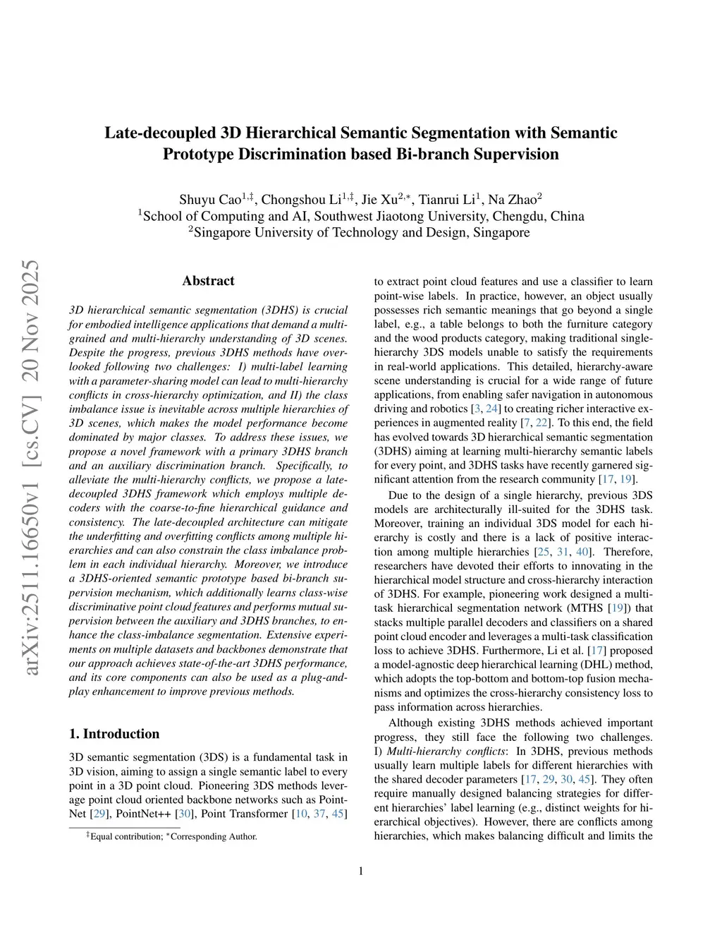 Late-decoupled 3D Hierarchical Semantic Segmentation with Semantic Prototype Discrimination based Bi-branch Supervision