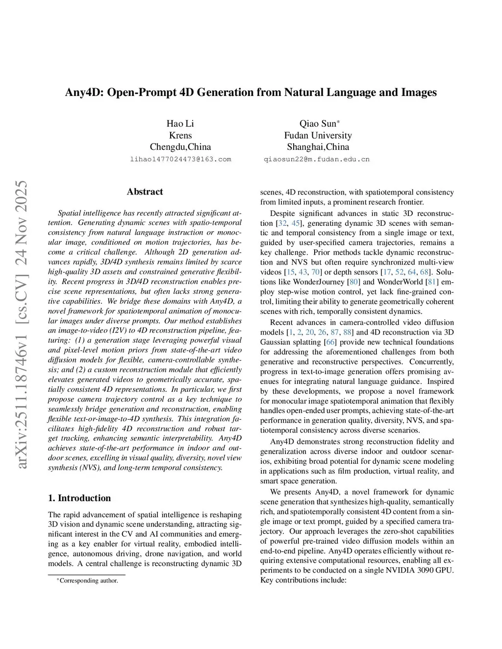 Any4D: Open-Prompt 4D Generation from Natural Language and Images