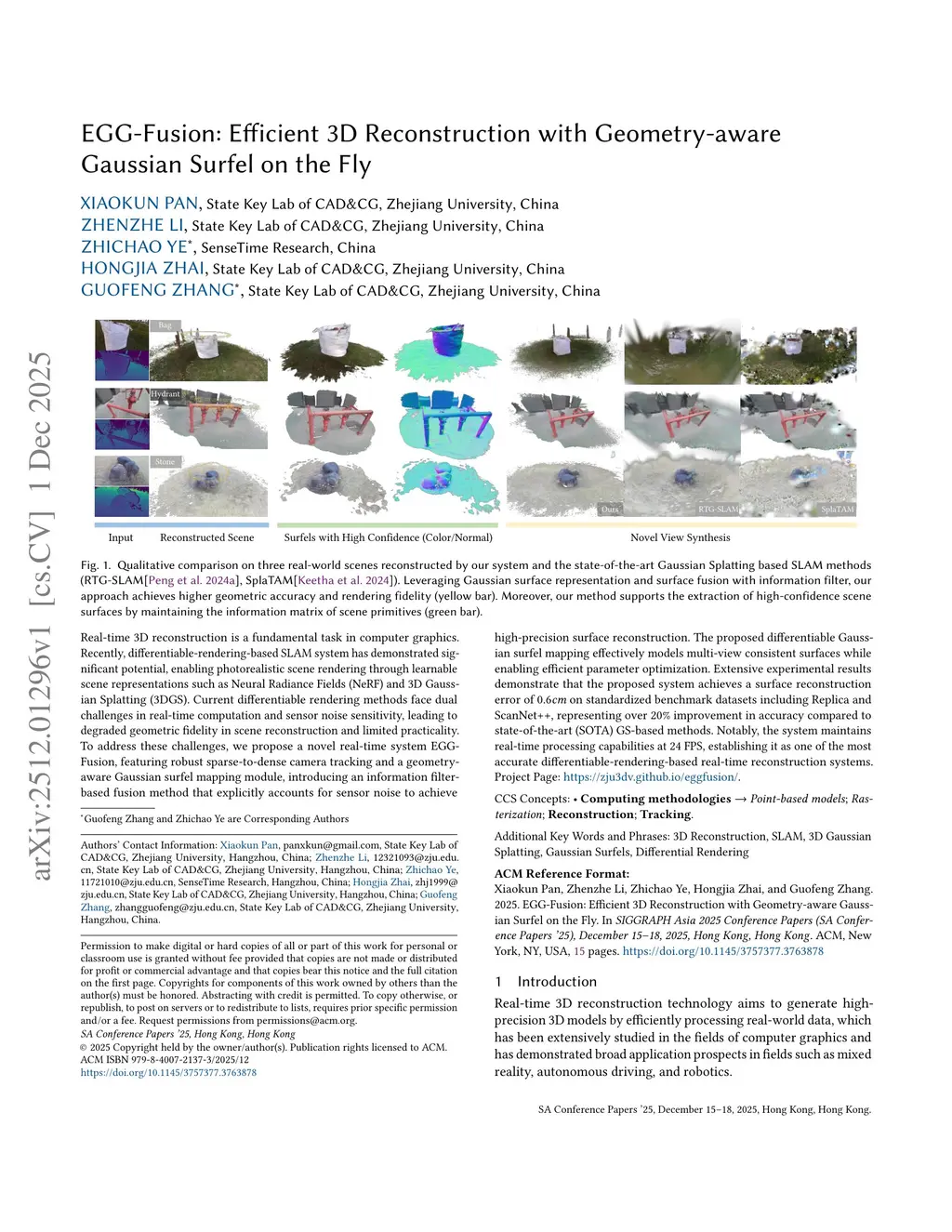 EGG-Fusion: Efficient 3D Reconstruction with Geometry-aware Gaussian Surfel on the Fly