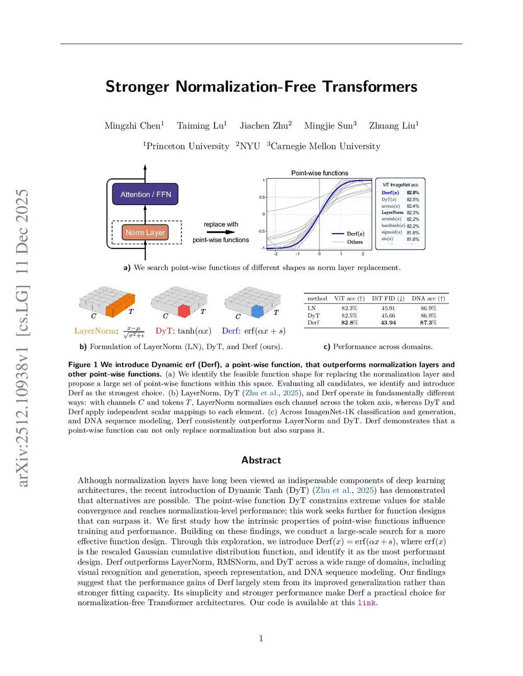 Although normalization layers have long been viewed as indispensable components of deep learning architectures, the recent introduction of Dynamic Tanh (DyT) has demonstrated that alternatives are possible. The point-wise function DyT constrains extreme values for stable convergence and reaches normalization-level performance; this work seeks further for function designs that can surpass it. We first study how the intrinsic properties of point-wise functions influence training and performance. Building on these findings, we conduct a large-scale search for a more effective function design. Through this exploration, we introduce , where is the rescaled Gaussian cumulative distribution function, and identify it as the most performant design. Derf outperforms LayerNorm, RMSNorm, and DyT across a wide range of domains, including visual recognition and generation, speech representation, and DNA sequence modeling. Our analysis also suggests that the performance gains of Derf largely stem from its improved generalization rather than stronger fitting capacity. Its simplicity and stronger performance make Derf a practical choice for normalization-free Transformer architectures.