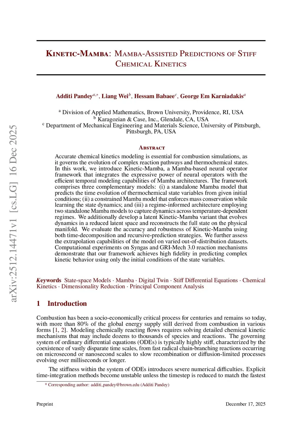 Kinetic-Mamba: Mamba-Assisted Predictions of Stiff Chemical Kinetics