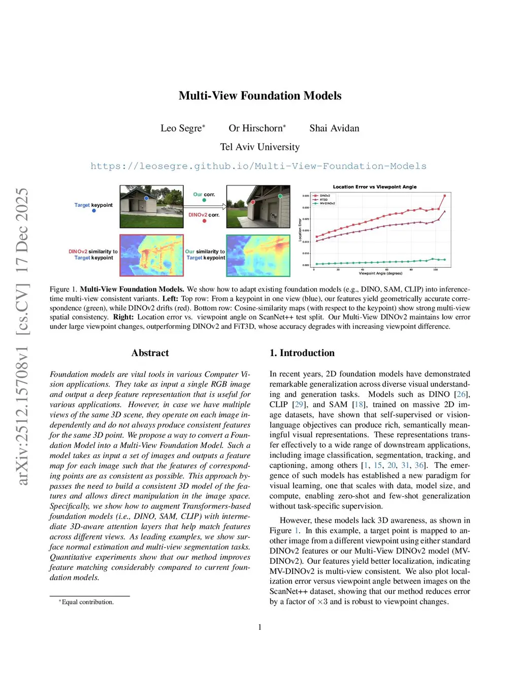 Foundation models are vital tools in various Computer Vision applications. They take as input a single RGB image and output a deep feature representation that is useful for various applications. However, in case we have multiple views of the same 3D scene, they operate on each image independently and do not always produce consistent features for the same 3D point. We propose a way to convert a Foundation Model into a Multi-View Foundation Model. Such a model takes as input a set of images and outputs a feature map for each image such that the features of corresponding points are as consistent as possible. This approach bypasses the need to build a consistent 3D model of the features and allows direct manipulation in the image space. Specifically, we show how to augment Transformers-based foundation models (i.e., DINO, SAM, CLIP) with intermediate 3D-aware attention layers that help match features across different views. As leading examples, we show surface normal estimation and multi-view segmentation tasks. Quantitative experiments show that our method improves feature matching considerably compared to current foundation models.