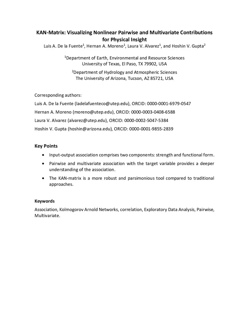 Interpreting complex datasets remains a major challenge for scientists, particularly due to high dimensionality and collinearity among variables. We introduce a novel application of Kolmogorov-Arnold Networks (KANs) to enhance interpretability and parsimony beyond what traditional correlation analyses offer. We present two interpretable, color-coded visualization tools: the Pairwise KAN Matrix (PKAN) and the Multivariate KAN Contribution Matrix (MKAN). PKAN characterizes nonlinear associations between pairs of variables, while MKAN serves as a nonlinear feature-ranking tool that quantifies the relative contributions of inputs in predicting a target variable. These tools support pre-processing (e.g., feature selection, redundancy analysis) and post-processing (e.g., model explanation, physical insights) in model development workflows. Through experimental comparisons, we demonstrate that PKAN and MKAN yield more robust and informative results than Pearson Correlation and Mutual Information. By capturing the strength and functional forms of relationships, these matrices facilitate the discovery of hidden physical patterns and promote domain-informed model development.