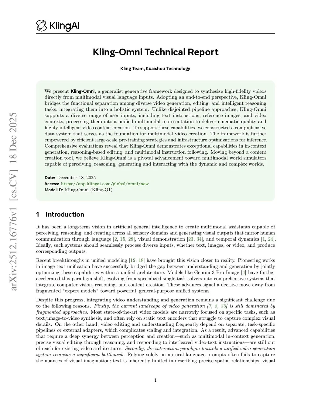 We present Kling-Omni, a generalist generative framework designed to synthesize high-fidelity videos directly from multimodal visual language inputs. Adopting an end-to-end perspective, Kling-Omni bridges the functional separation among diverse video generation, editing, and intelligent reasoning tasks, integrating them into a holistic system. Unlike disjointed pipeline approaches, Kling-Omni supports a diverse range of user inputs, including text instructions, reference images, and video contexts, processing them into a unified multimodal representation to deliver cinematic-quality and highly-intelligent video content creation. To support these capabilities, we constructed a comprehensive data system that serves as the foundation for multimodal video creation. The framework is further empowered by efficient large-scale pre-training strategies and infrastructure optimizations for inference. Comprehensive evaluations reveal that Kling-Omni demonstrates exceptional capabilities in in-context generation, reasoning-based editing, and multimodal instruction following. Moving beyond a content creation tool, we believe Kling-Omni is a pivotal advancement toward multimodal world simulators capable of perceiving, reasoning, generating and interacting with the dynamic and complex worlds.