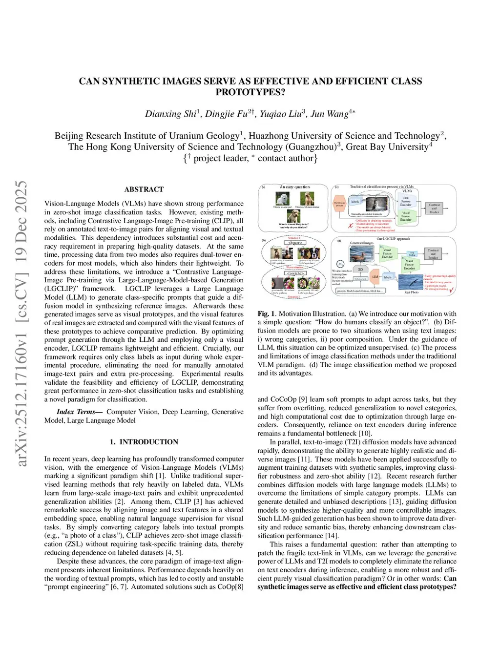 Vision-Language Models (VLMs) have shown strong performance in zero-shot image classification tasks. However, existing methods, including Contrastive Language-Image Pre-training (CLIP), all rely on annotated text-to-image pairs for aligning visual and textual modalities. This dependency introduces substantial cost and accuracy requirement in preparing high-quality datasets. At the same time, processing data from two modes also requires dual-tower encoders for most models, which also hinders their lightweight. To address these limitations, we introduce a ``Contrastive Language-Image Pre-training via Large-Language-Model-based Generation (LGCLIP)" framework. LGCLIP leverages a Large Language Model (LLM) to generate class-specific prompts that guide a diffusion model in synthesizing reference images. Afterwards these generated images serve as visual prototypes, and the visual features of real images are extracted and compared with the visual features of these prototypes to achieve comparative prediction. By optimizing prompt generation through the LLM and employing only a visual encoder, LGCLIP remains lightweight and efficient. Crucially, our framework requires only class labels as input during whole experimental procedure, eliminating the need for manually annotated image-text pairs and extra pre-processing. Experimental results validate the feasibility and efficiency of LGCLIP, demonstrating great performance in zero-shot classification tasks and establishing a novel paradigm for classification.