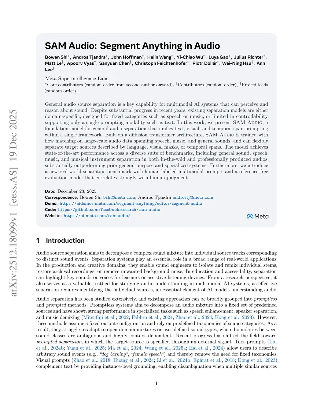 SAM Audio: Segment Anything in Audio