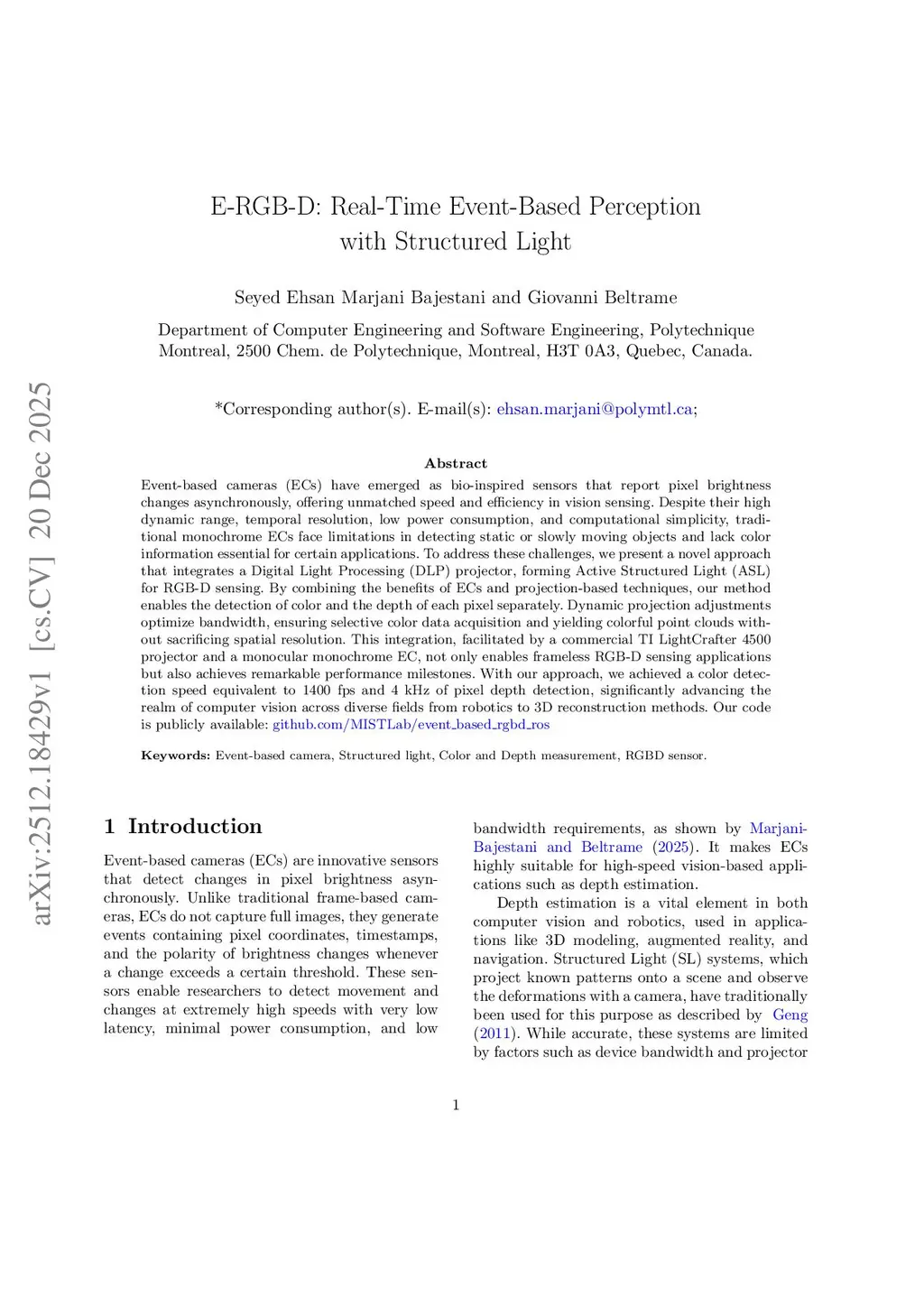 E-RGB-D: Real-Time Event-Based Perception with Structured Light
