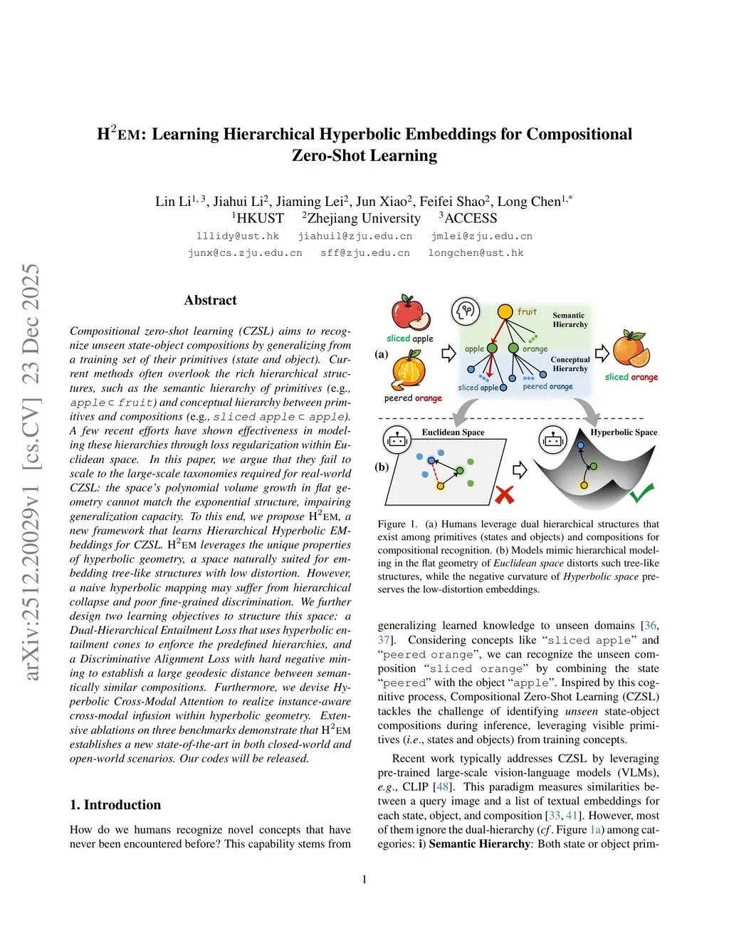 em: Learning Hierarchical Hyperbolic Embeddings for Compositional Zero-Shot Learning